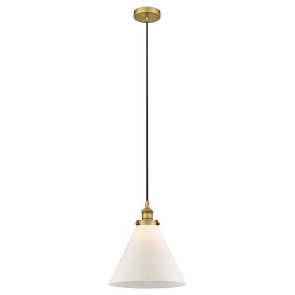 Cone 60-Watt 1-Light Brushed Brass Standard Mini Pendant Light with Painted Glass Shade, No Bulbs Included