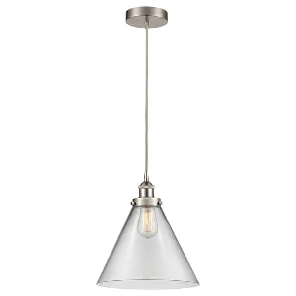Cone 60-Watt 1-Light Brushed Satin Nickel Standard Mini Pendant Light with Clear Glass Shade, No Bulbs Included