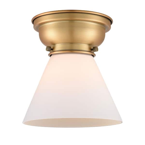 Cone 7.75 in. 1-Light Brushed Brass Industrial Flush Mount with Seeded Glass Shade