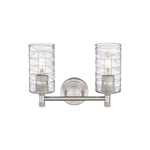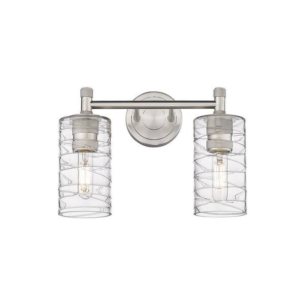 Crown Point 13.88 in. 2-Light Satin Nickel Vanity Light with Glass Shade