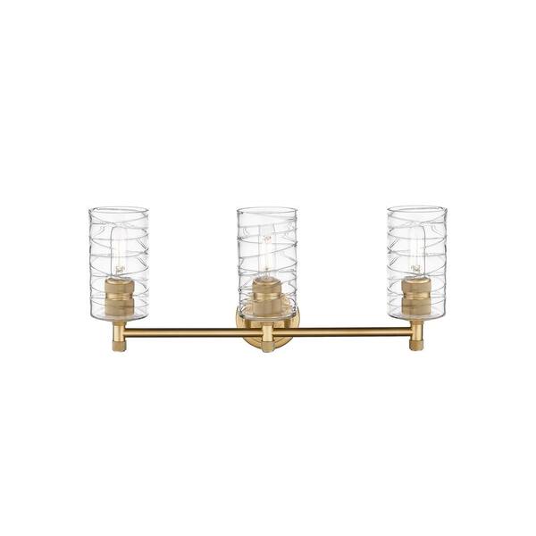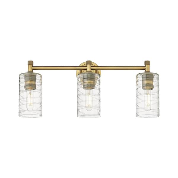 Crown Point 23.88 in. 3-Light Brushed Brass Vanity Light with Glass Shade