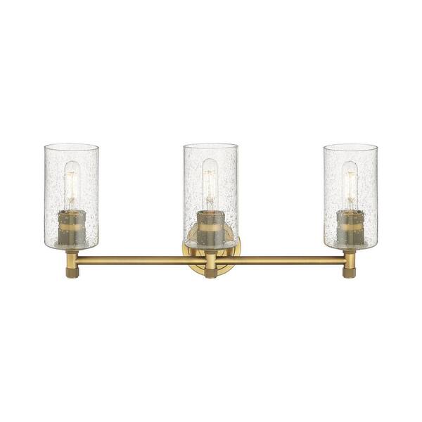 Crown Point 23.88 in. 3-Light Brushed Brass Vanity Light with Glass Shade