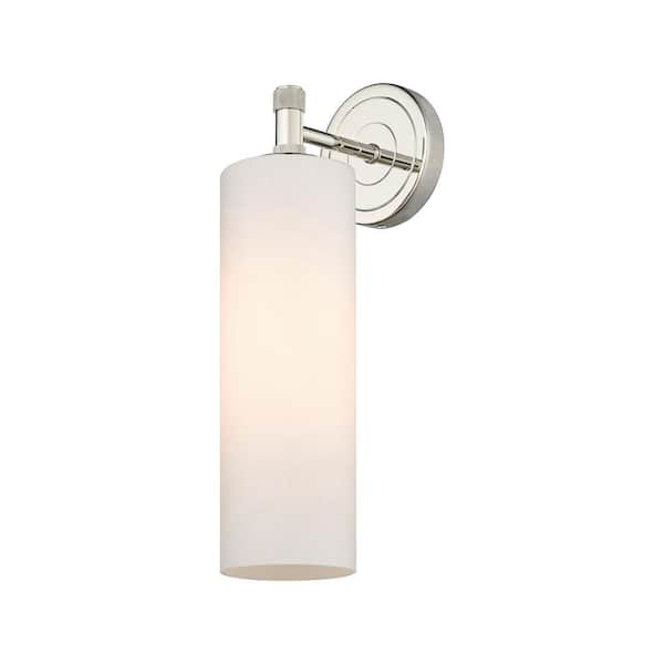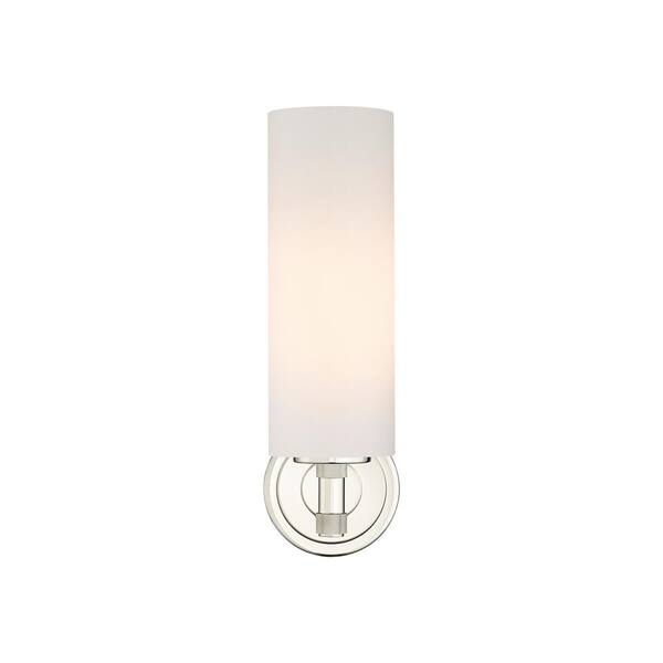 Crown Point 3.88 in. 1-Light Polished Nickel Wall Sconce with Glass Shade