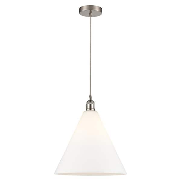 Edison Cone 60-Watt 1-Light Brushed Satin Nickel Shaded Mini Pendant Light with Painted Glass Shade