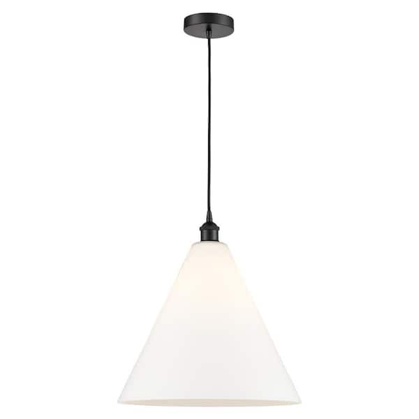 Edison Cone 60-Watt 1-Light Matte Black Shaded Mini Pendant Light with Matte White Glass