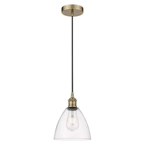 Edison Dome 60-Watt 1-Light Antique Brass Standard Mini Pendant Light with Clear Glass Shade, No Bulbs Included