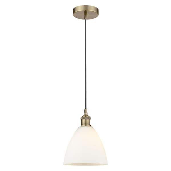 Edison Dome 60-Watt 1-Light Antique Brass Standard Mini Pendant Light with Painted Glass Shade, No Bulbs Included