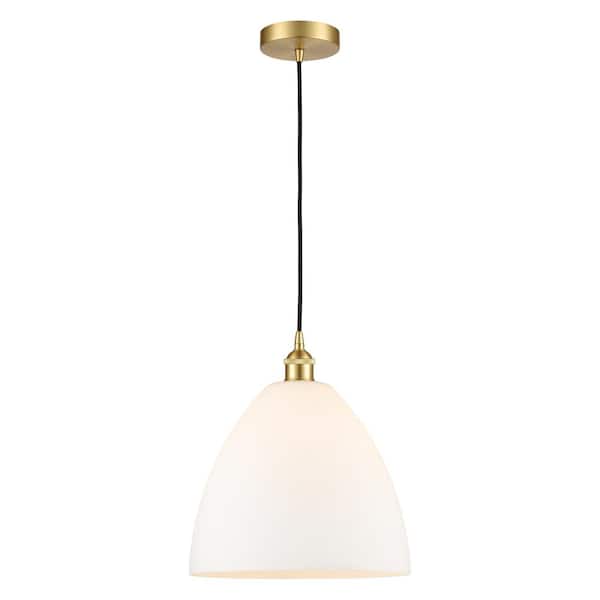 Edison Dome 60-Watt 1-Light Satin Gold Shaded Mini Pendant Light with Painted Glass Shade