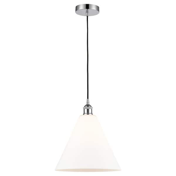 Edison Glass Cone 60-Watt 1-Light Polished Chrome Standard Mini Pendant Light with Painted Glass Shade