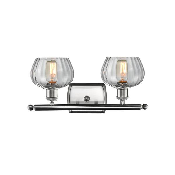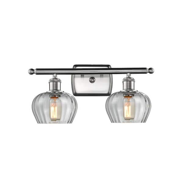Fenton 16 in. 2 Light Brushed Satin Nickel, Clear Vanity Light with Clear Glass Shade