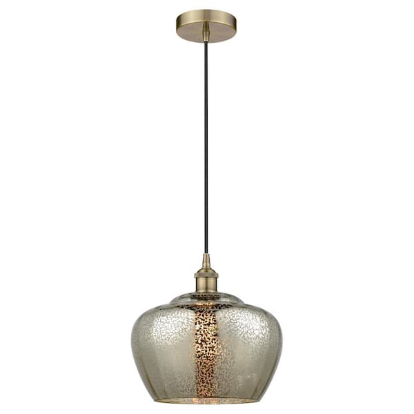 Fenton 60-Watt 1-Light Antique Brass Standard Mini Pendant Light with Painted Glass Shade, No Bulbs Included