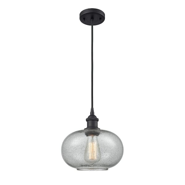Gorham 1-Light Matte Black Globe Pendant Light with Charcoal Glass Shade