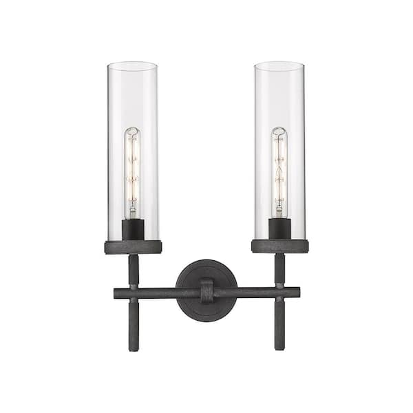 Lincoln 13.88 in. 2-Light Weathered Zinc Vanity Light with Glass Shade