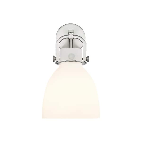 Newton Bell 1-Light Satin Nickel Wall Sconce with White Glass Shade