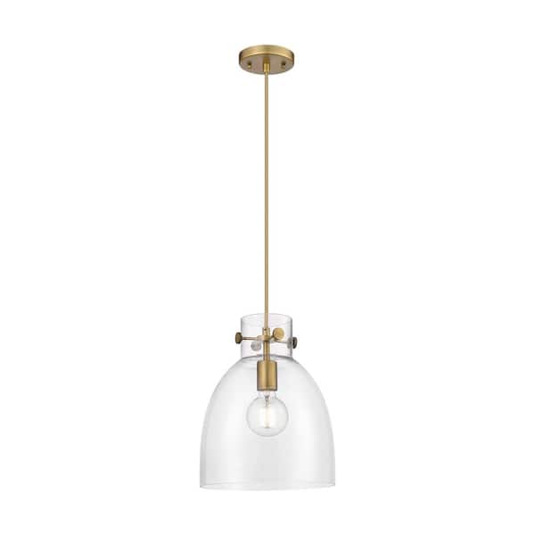 Newton Bell 100-Watt 1 Light Brushed Brass Shaded Pendant Light with Clear glass Clear Glass Shade