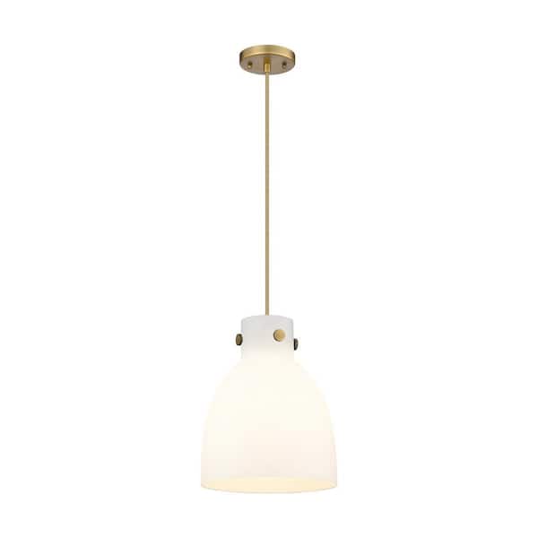 Newton Bell 100-Watt 1 Light Brushed Brass Shaded Pendant Light with Frosted glass Frosted Glass Shade