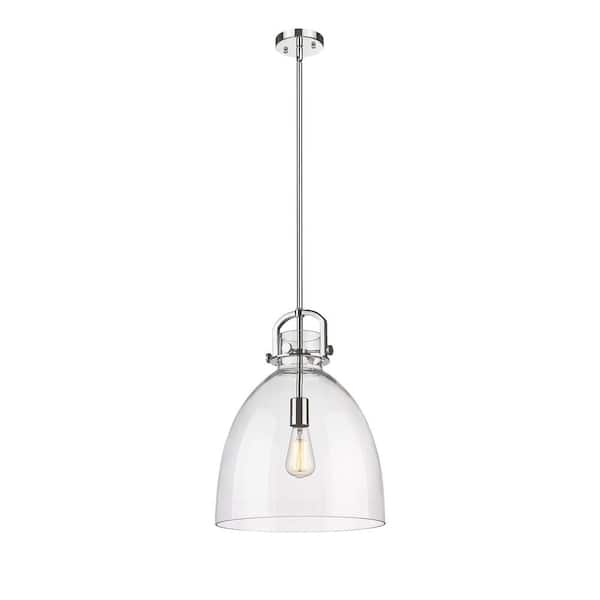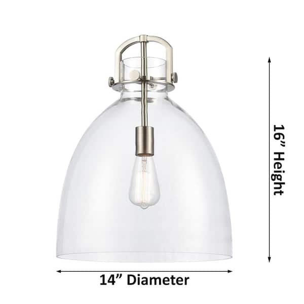 Newton Bell 100-Watt 1 Light Polished Nickel Shaded Pendant Light with Clear glass Clear Glass Shade