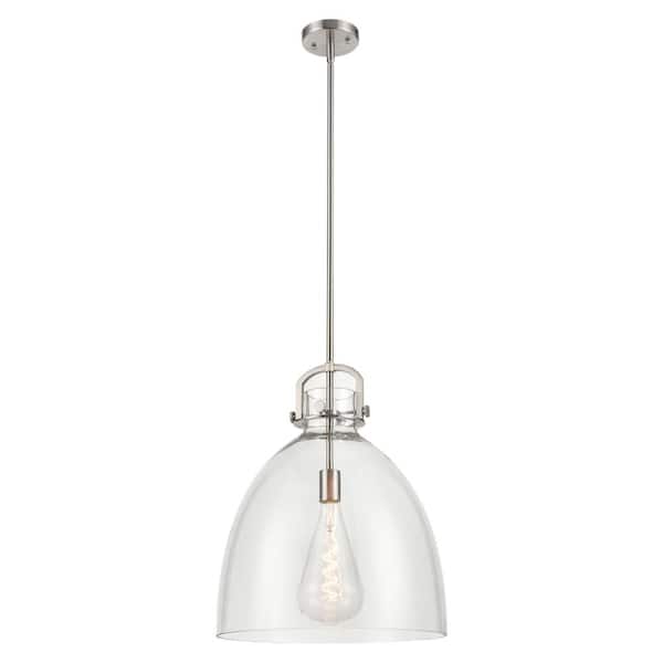 Newton Bell 100-Watt 1-Light Satin Nickel Shaded Mini Pendant Light with Clear Glass Shade