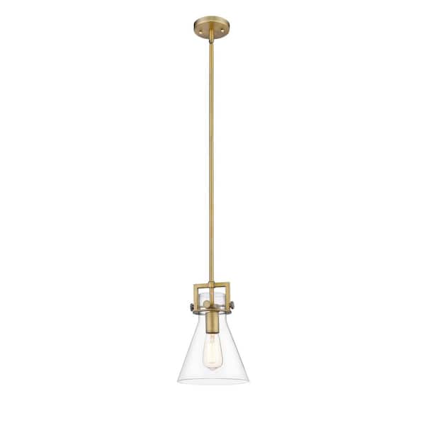 Newton Cone 1-Light Brushed Brass Shaded Pendant Light with Clear Glass Shade