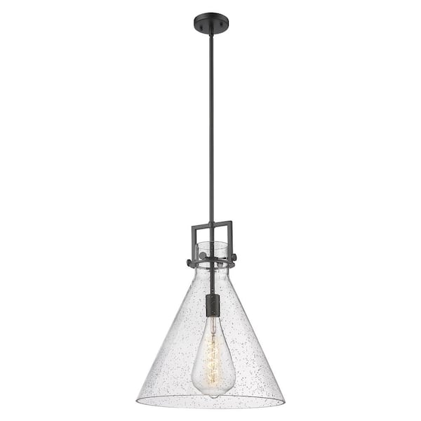 Newton Cone 100-Watt 1-Light Matte Black Shaded Mini Pendant Light with Seeded Glass Shade