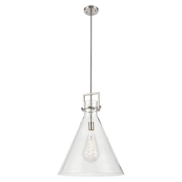 Newton Cone 100-Watt 1-Light Satin Nickel Shaded Mini Pendant Light with Clear Glass Shade
