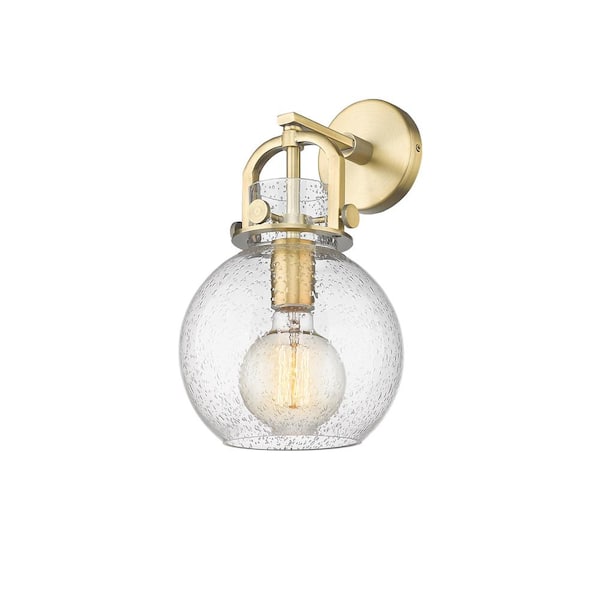 Newton Sphere 1-Light Brushed Brass Wall Sconce with Clear Glass Shade