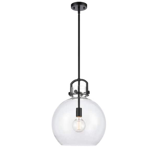 Newton Sphere 1-Light Matte Black Shaded Pendant Light with Clear Glass Shade