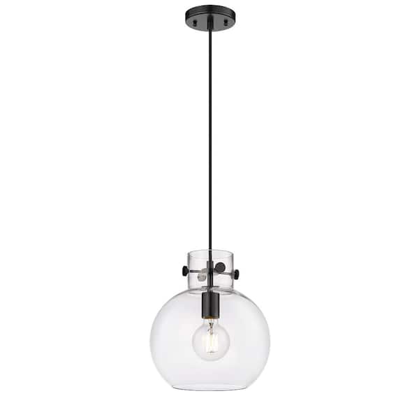 Newton Sphere 100-Watt 1 Light Matte Black Shaded Pendant Light with Clear glass Clear Glass Shade
