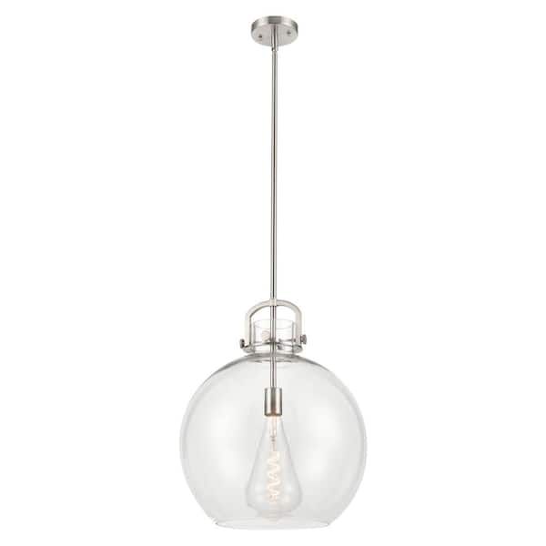 Newton Sphere 100-Watt 1-Light Satin Nickel Shaded Mini Pendant Light with Clear Glass Shade