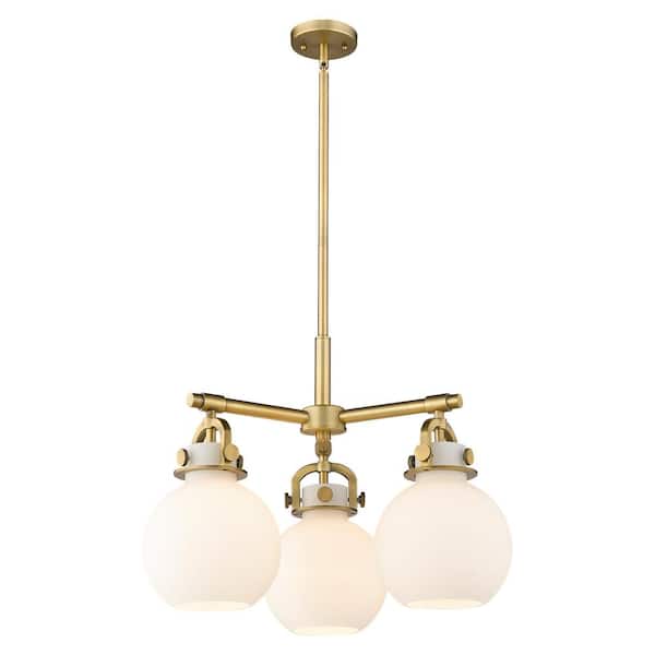 Newton Sphere 100-Watt 3-Light Brushed Brass Shaded Mini Pendant Light with Painted Glass Shade