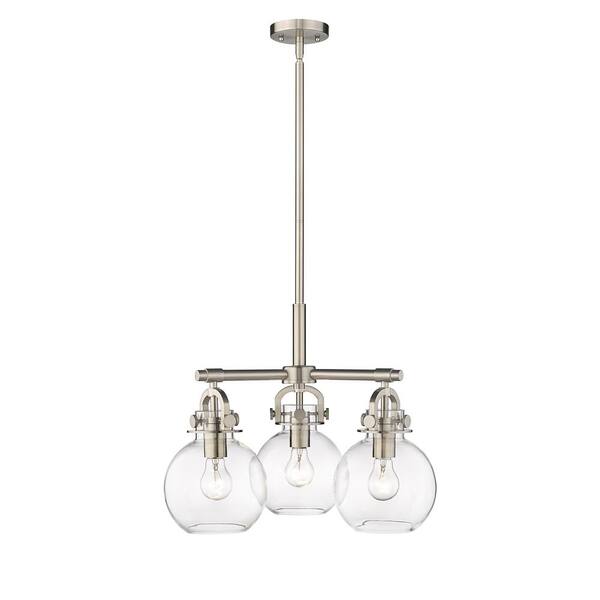 Newton Sphere 100-Watt 3-Light Satin Nickel Shaded Mini Pendant Light with Clear Glass Shade