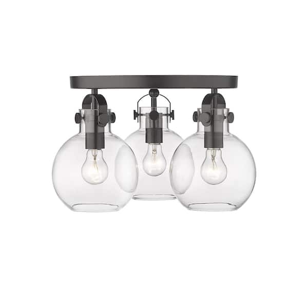 Newton Sphere 19.63 in. 3-Light Matte Black Industrial Flush Mount with Clear Glass Shade