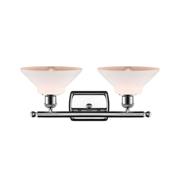 Orwell 18 in. 2 Light Matte White, Polished Chrome Vanity Light with White Glass Shade