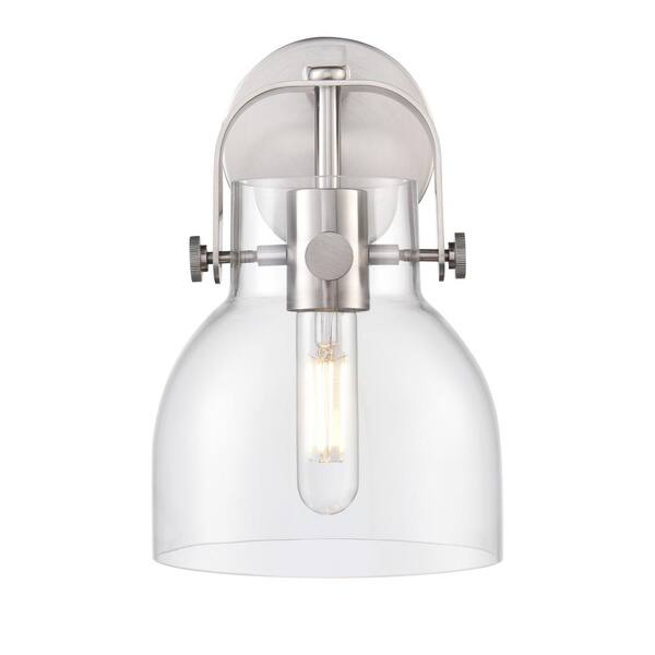 Pilaster II Bell 6.5 in. 1-Light Satin Nickel Wall Sconce with Glass Shade