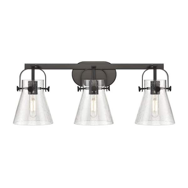 Pilaster II Cone 26.5 in. 3-Light Matte Black Vanity Light with Glass Shade