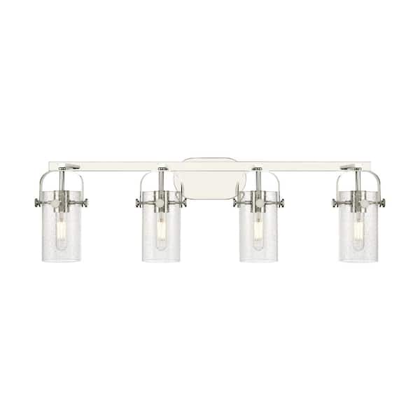 Pilaster II Cylinder 34.88 in. 4-Light Polished Nickel Vanity Light with Glass Shade