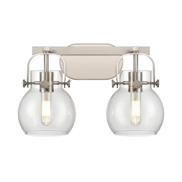 Pilaster II Sphere 17 in. 2-Light Satin Nickel Vanity Light with Glass Shade