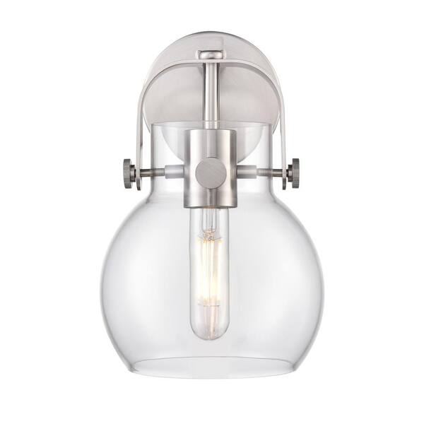 Pilaster II Sphere 6.5 in. 1-Light Satin Nickel Wall Sconce with Glass Shade