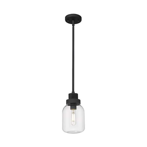 Somers 100-Watt 1 Light Textured Black Shaded Pendant Light with Clear glass Clear Glass Shade