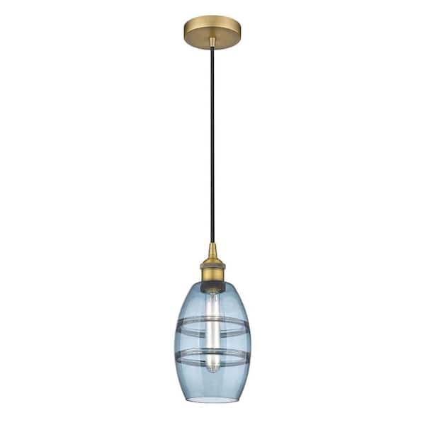 Vaz 100-Watt 1-Light Brushed Brass Standard Mini Pendant Light with Painted Glass Shade, No Bulbs Included