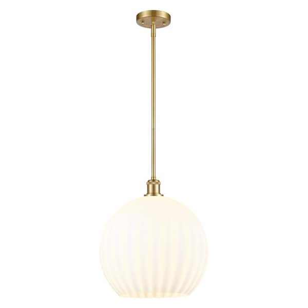 White Venetian 100-Watt 1-Light Satin Gold Shaded Mini Pendant Light with Painted Glass Shade