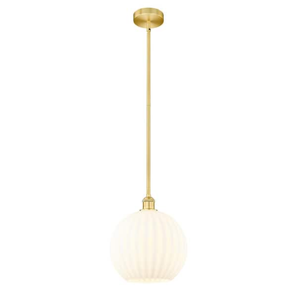 White Venetian 100-Watt 1-Light Satin Gold Shaded Mini Pendant Light with Painted Glass Shade