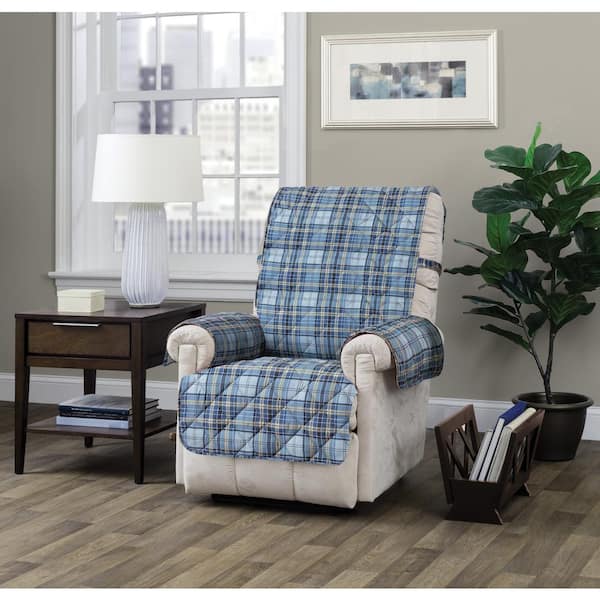 Tartan Plaid Navy Polyester Secure Fits on Recliner Cover 1-Piece