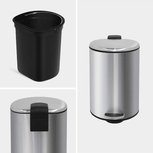 1.85 Gal./7 Liter Silver Semi-Round Step-on Metal Household Trash Can with Lid, for Bathroom and Office, Stainless Steel