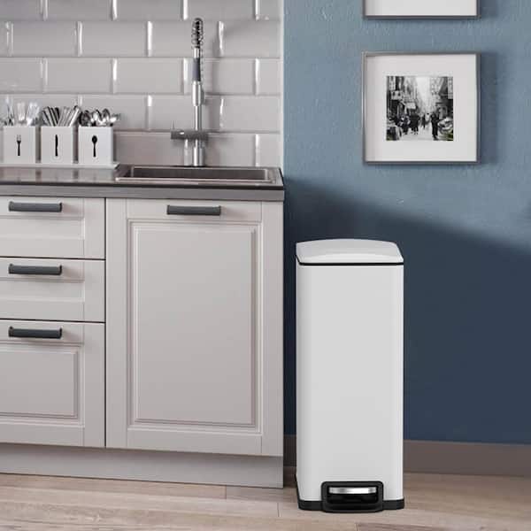 11.9 Gal. Matt White Slim Metal Household Trash Can, Kitchen Step-On Trash Can