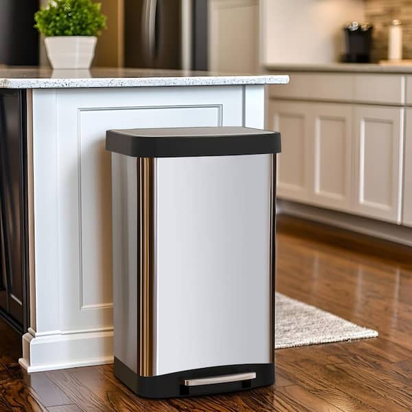 14.5 Gal. Step-On Stainless Steel Metal Household Trash Can with Lid, for Kitchen and Office, Silver