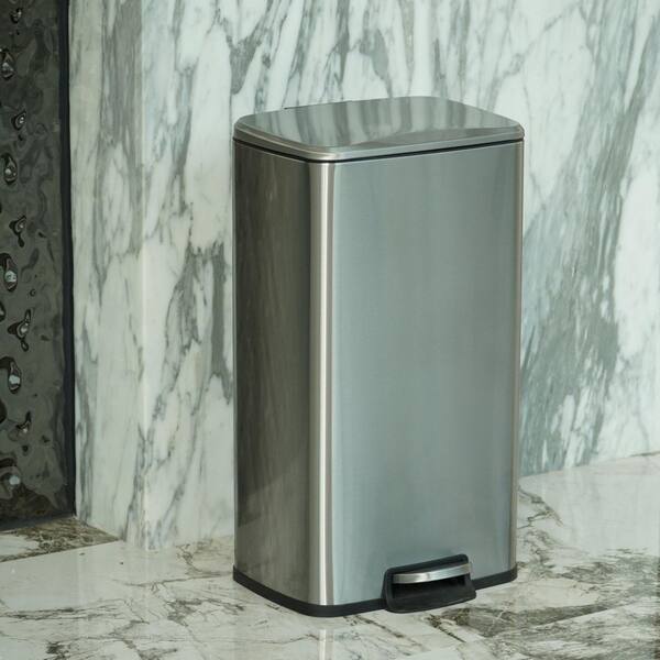 8 Gal./30-Liter Fingerprint Free Stainless Steel Rectangular Kitchen Step-on Trash Can