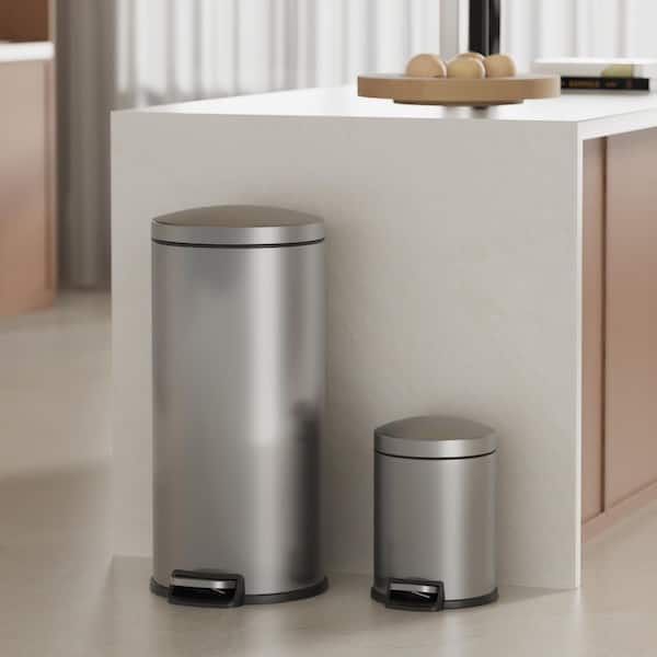 8 Gal./30-Liter and 1.3 Gal./5-Liter Fingerprint Free Stainless Steel Round Step-on Trash Can Set