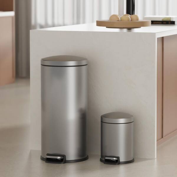8 Gal./30-Liter and 1.3 Gal./5-Liter Fingerprint Free Stainless Steel Round Step-on Trash Can Set