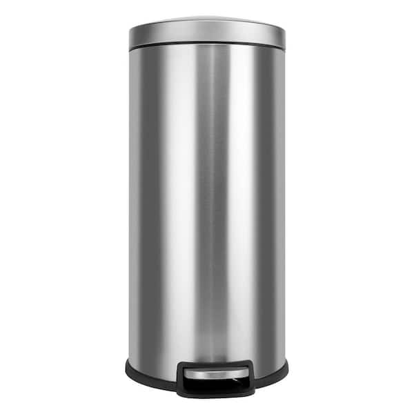 8 Gal. Stainless Steel Brushed Fingerprint-Resistant Round Step-On Trash Can